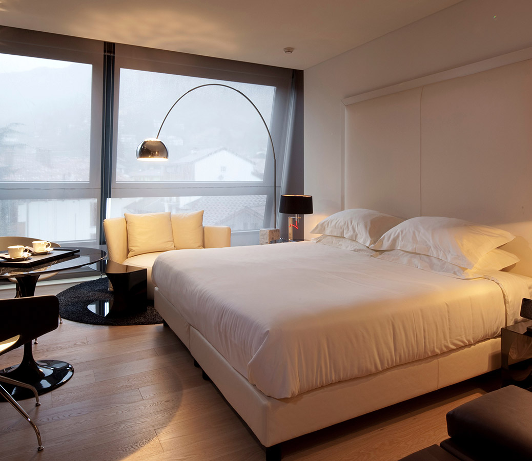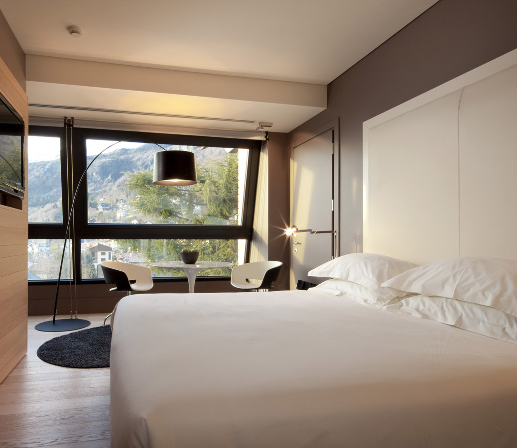 Affacciata sulle montagne Orobiche, questa suite ti accoglie con un’atmosfera di quiete assoluta. Le grandi vetrate portano la natura dentro la stanza, regalandoti momenti esclusivi di relax. Ogni dettaglio è pensato per chi ama la bellezza e desidera un soggiorno unico, in sintonia con il paesaggio.